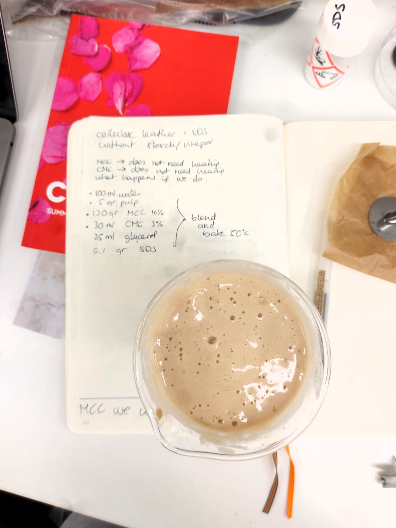 Sam was combining recipes to achieve a foamy cellulose leather.